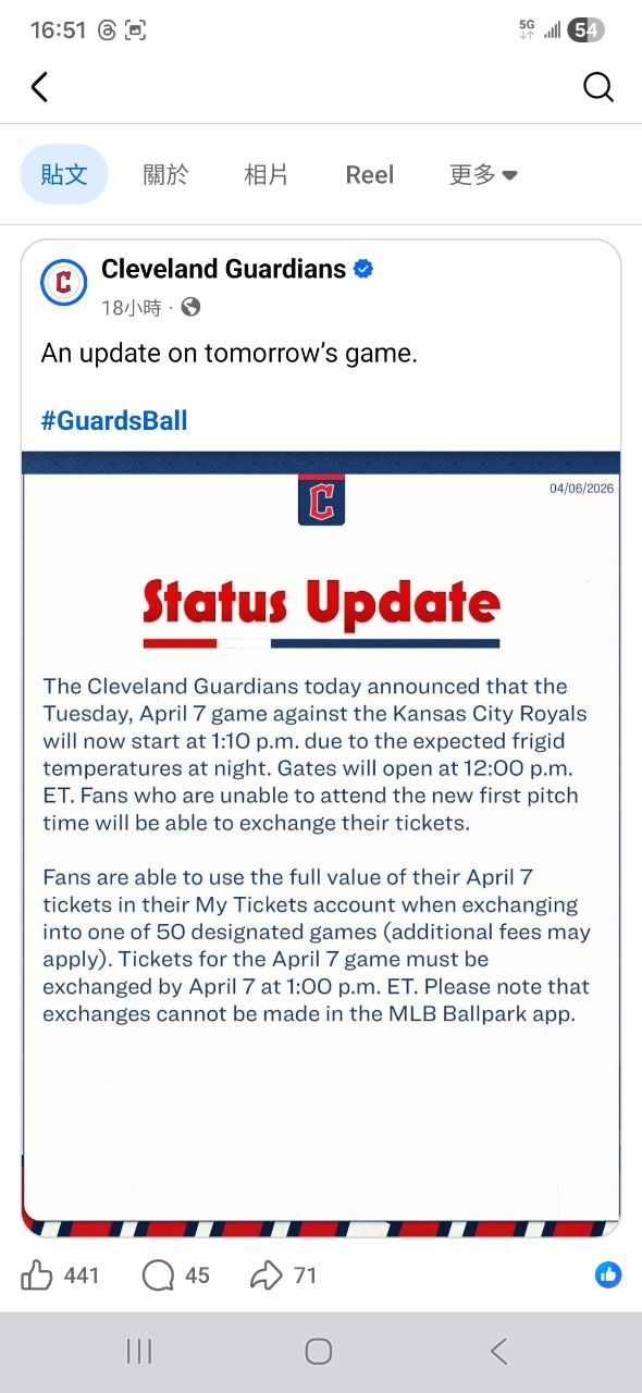 [情報] MLB明日皇家@守護者因天氣因素提早開打