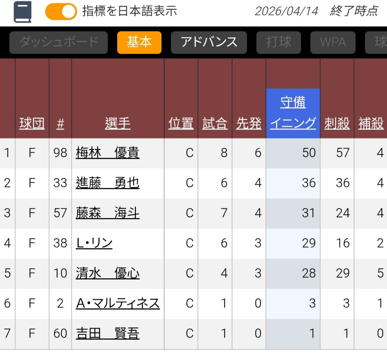 6.(捕)梅林優貴