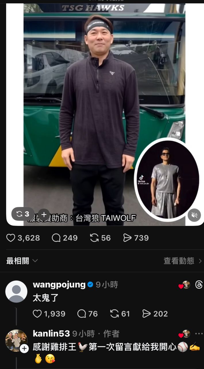[分享] 王柏融首度用脆留言 黃甘霖:感謝雞排王