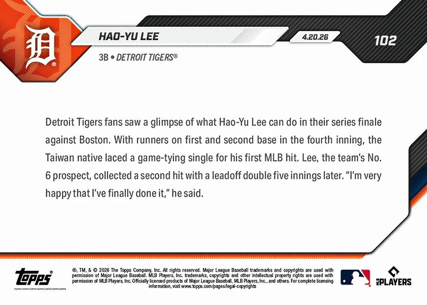 [分享] Topps Now李灝宇MLB首安首打點紀念卡