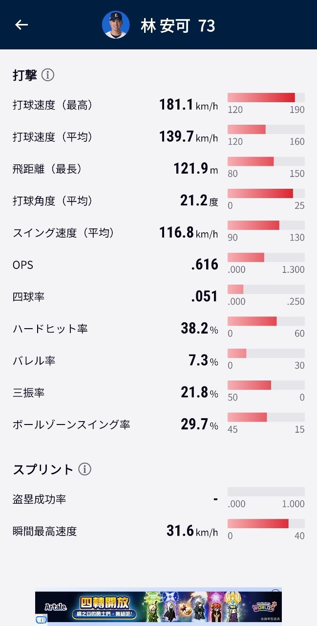 林安可 ISO.139 BB% 5.1 K% 21.8 BABIP.259