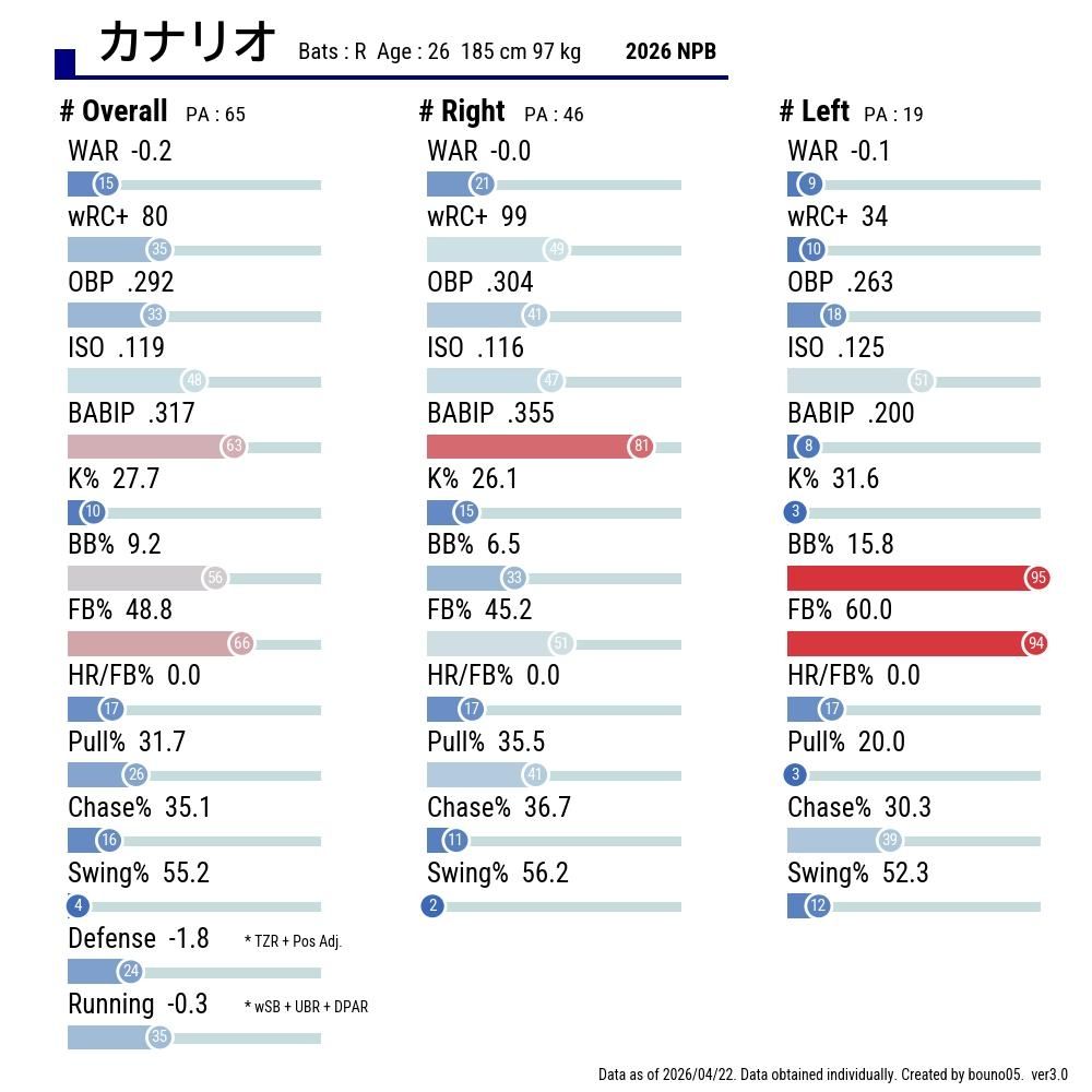 Canario vs 右 OPS.676 vs 左 OPS.472