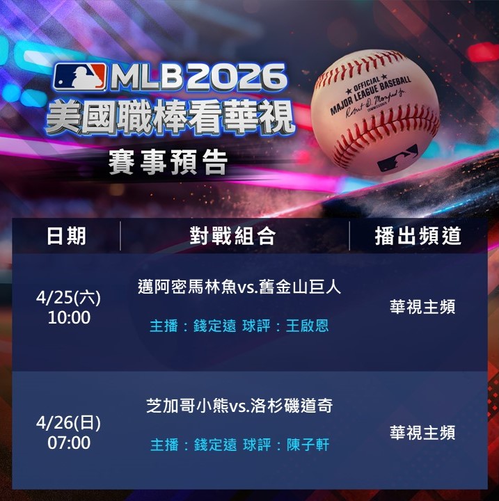 10:15 馬林魚 vs 巨人 華視 主播:錢定遠 / 球評:王啟恩Adam