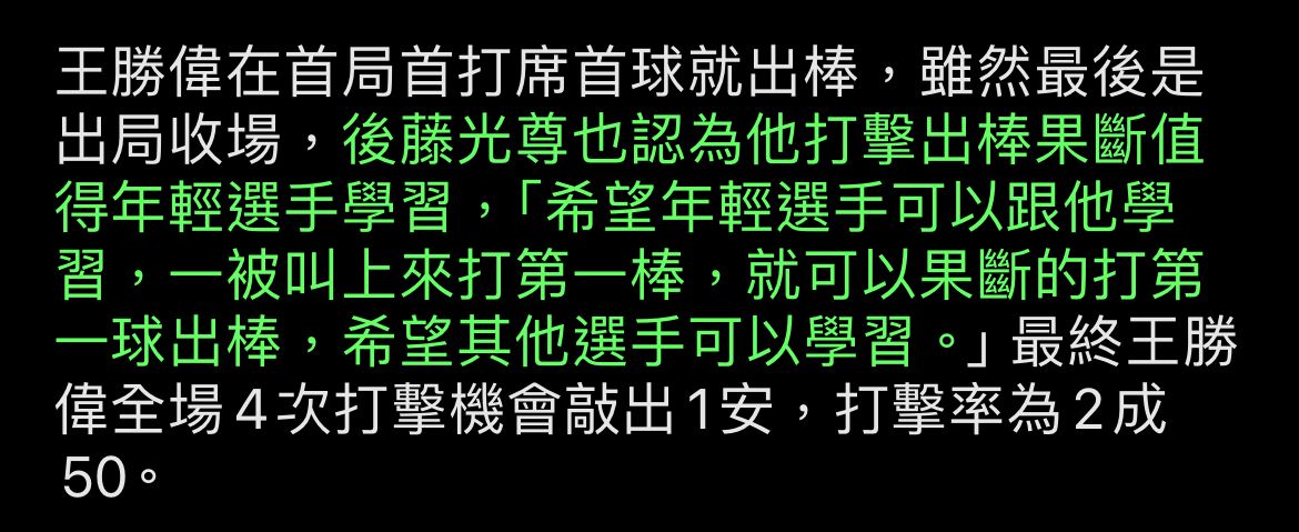 教,「學長說如果要打第1顆,也要挑好一點的位置,看能不能敲出長打,這樣才能幫助球