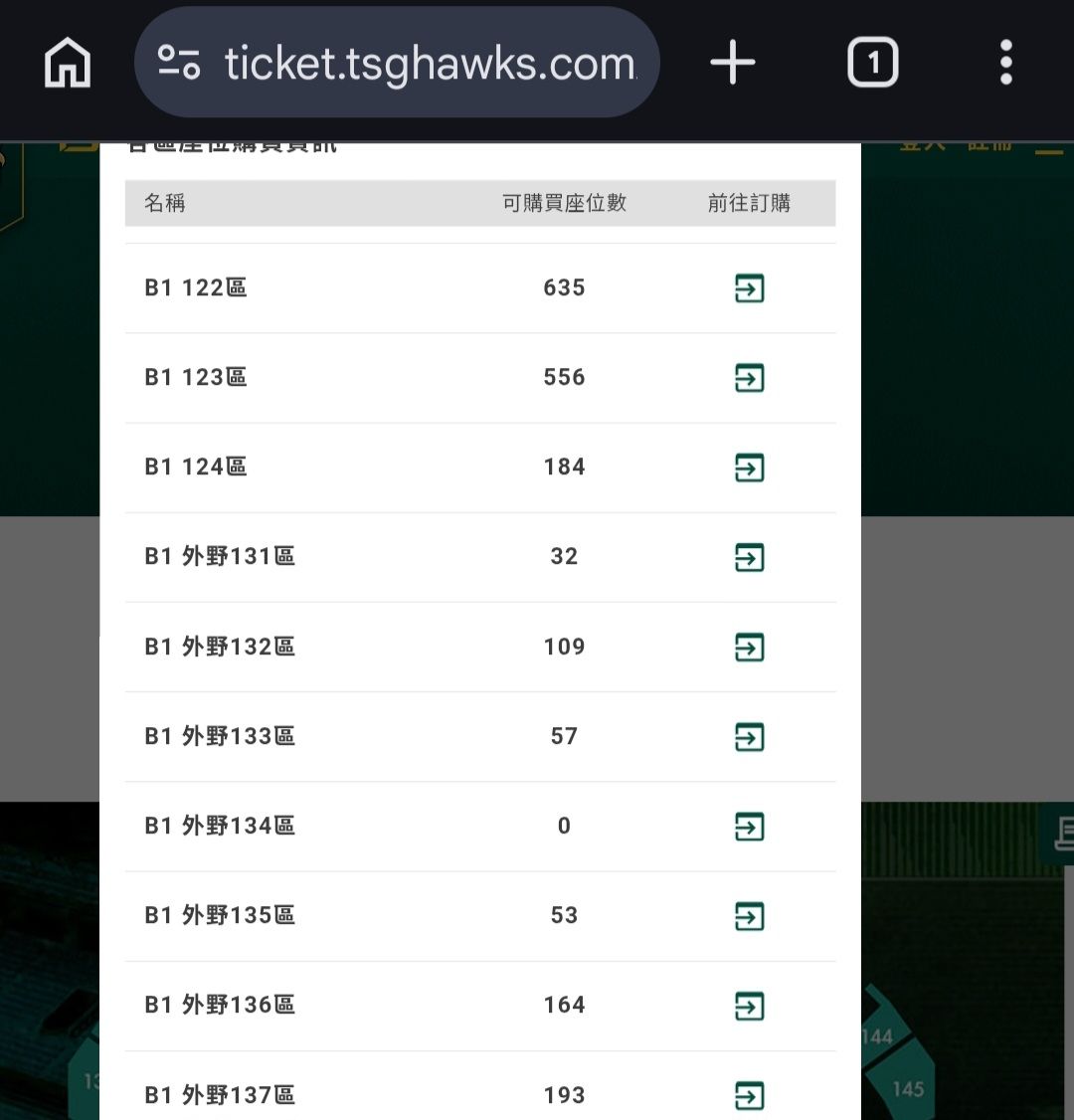 所以三天的122區~左外野137區售票情形: