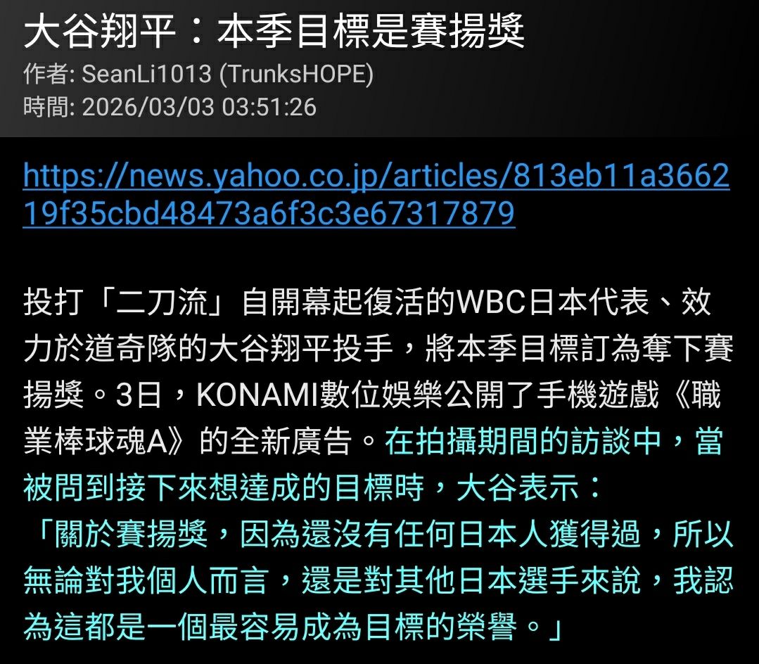 ※ 文章網址: https://www.ptt.cc/bbs/Baseball/M.1777419912.A.C83.html