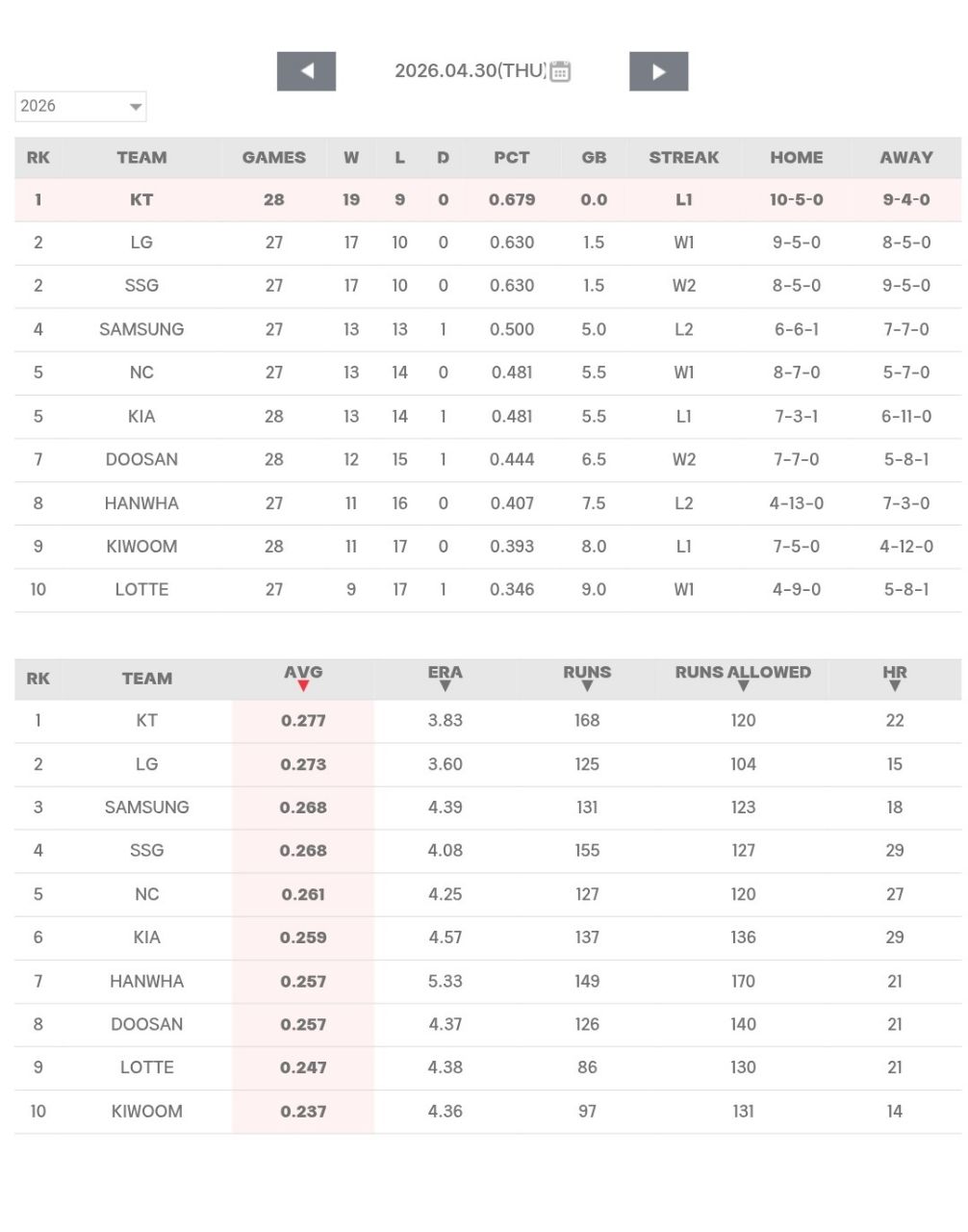 [韓職5/1(勞動節)先發預告](台灣時間)