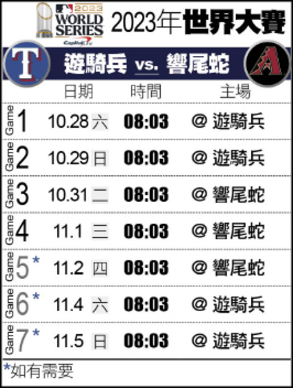 冠軍,將在台灣時間週六開打的世界大賽挑戰擁有主場優勢的遊騎兵隊。