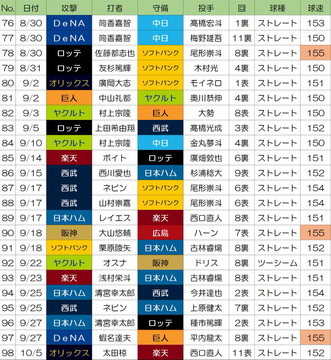 [分享] npb 2025 對150km/hr以上速球 HR榜