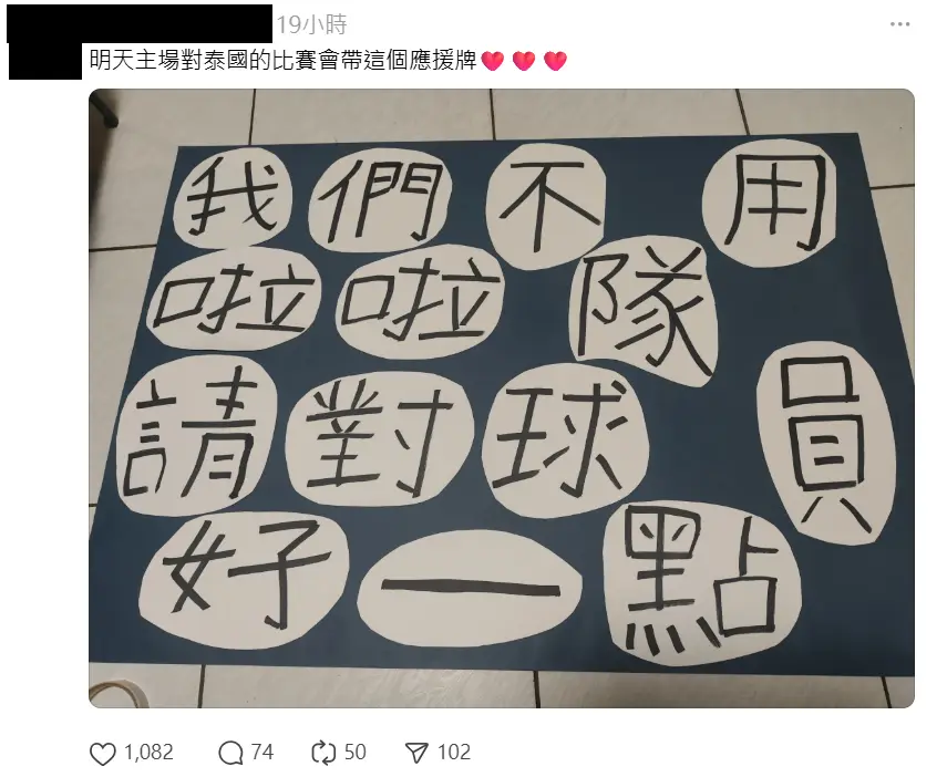 因為啦啦隊狸貓寶貝今天會去應援,球迷不爽所以自製看板