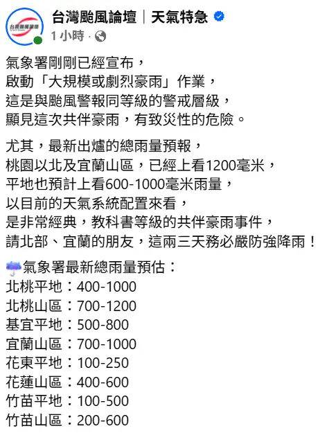 : : 明天北市雨量已達停班停課標準