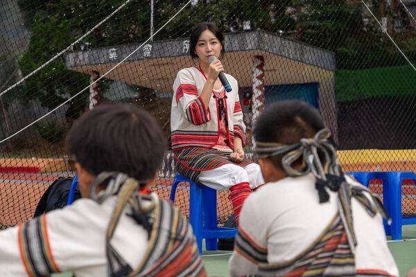 員安芝儇擔任「公益大使」,與球芽一同走入苗栗縣泰安鄉的 汶水國小,用她的笑容與