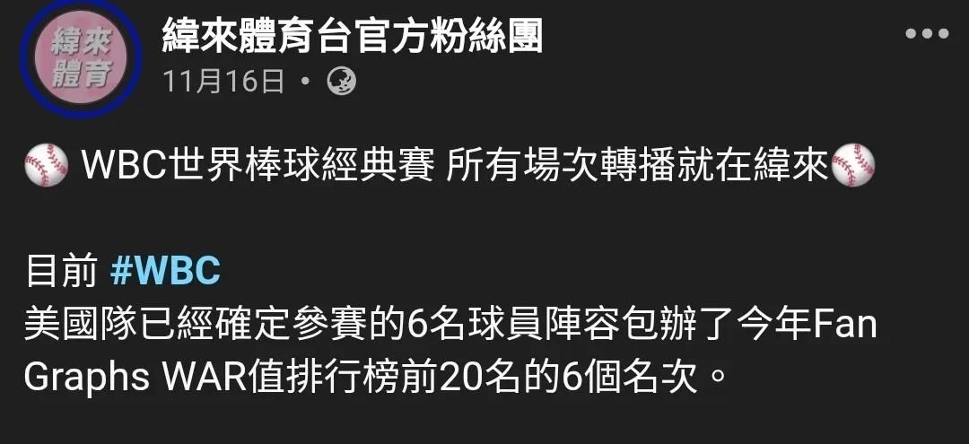 典賽(WBC)賽事轉播授權規劃更新如下: