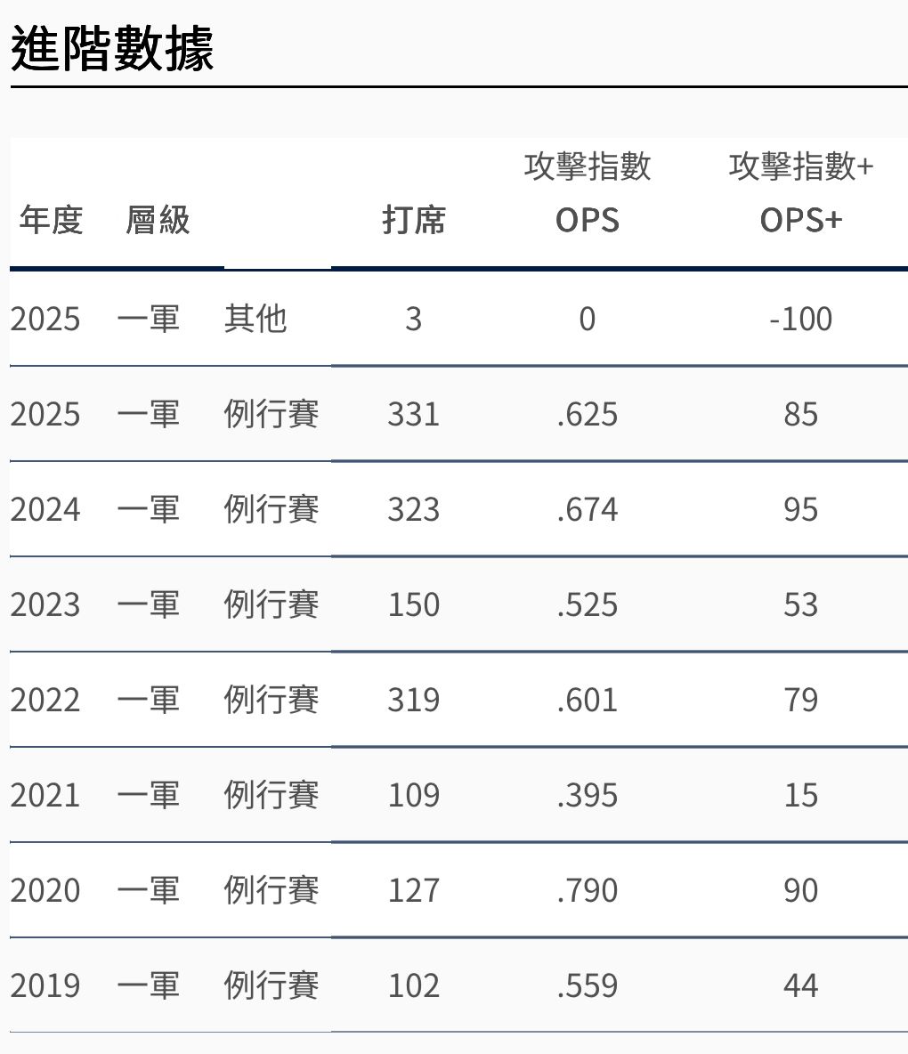: 2. 豊瑋跟戴同年,繳出大約是退化的懂哥成績,守備更是一言難盡,沒有明顯進步的話