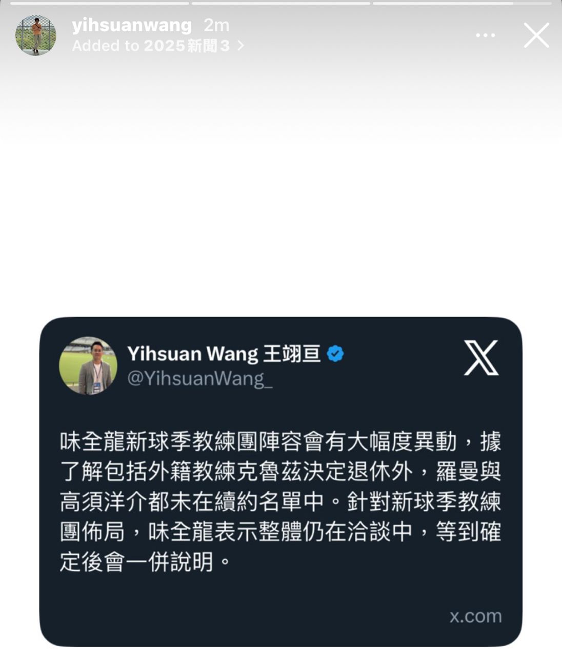 [分享] 奶哥IG-關於味全龍洋教練