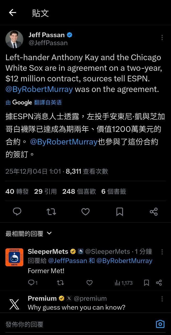 ※ 文章網址: https://www.ptt.cc/bbs/BaseballXXXX/M.1764781643.A.EF2.html