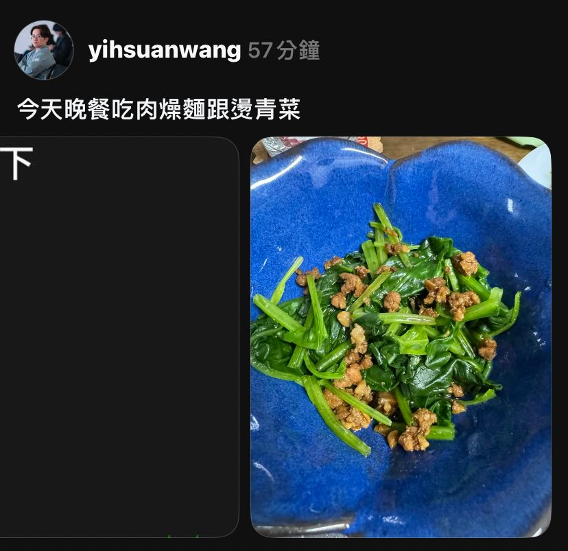[閒聊] 奶哥:晚餐吃肉燥麵和燙青菜