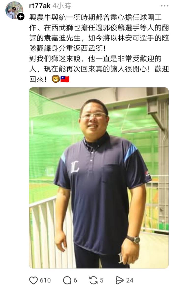 我記得袁嘉迪是富邦其中一個球探,在2024選秀桌上也有出現,負責操作的那個