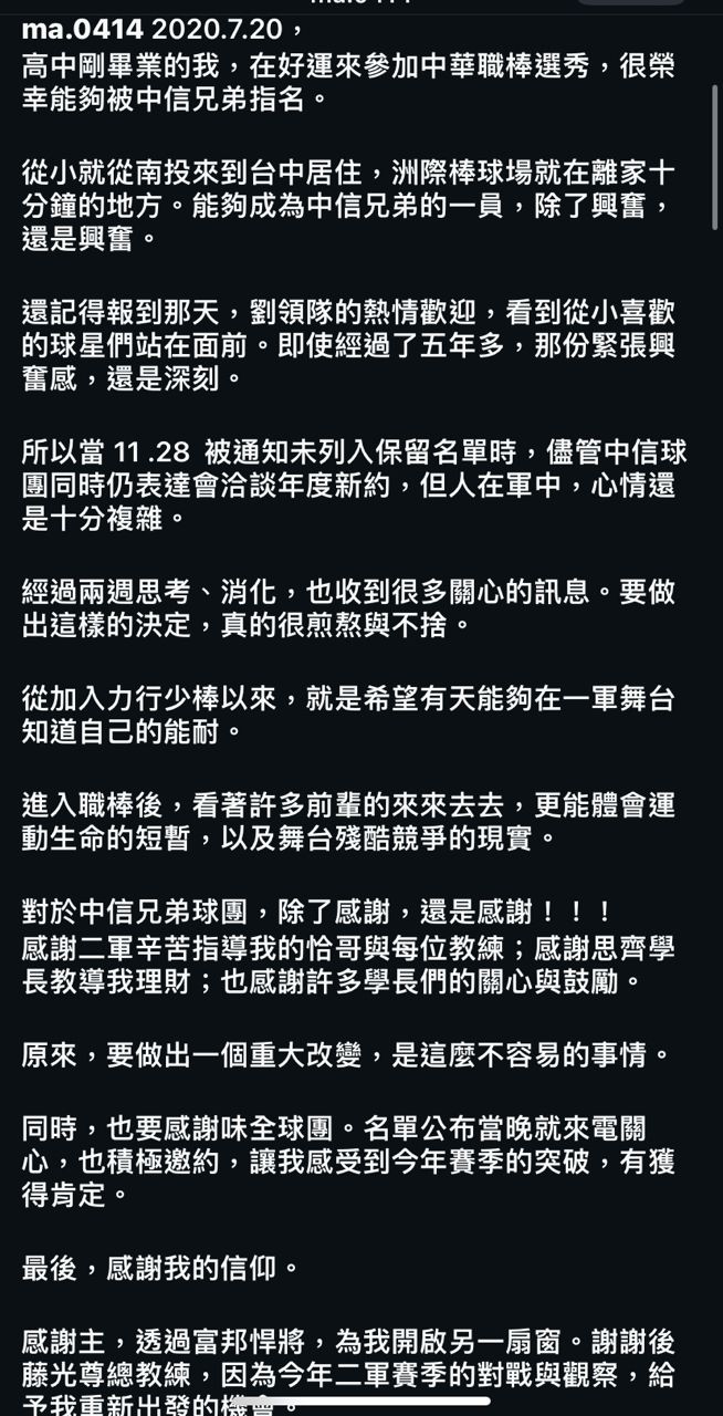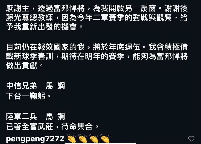 [閒聊] 味全在名單公布當晚就打給馬鋼