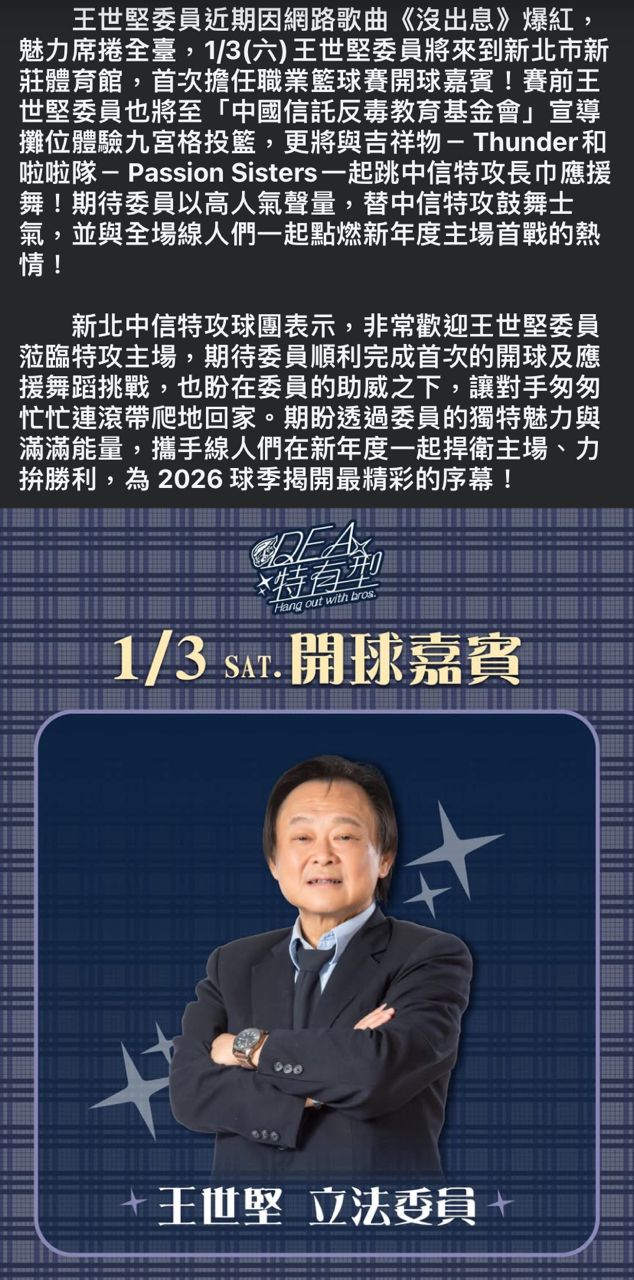 [閒聊] 中信特攻1/3開球嘉賓-王世堅