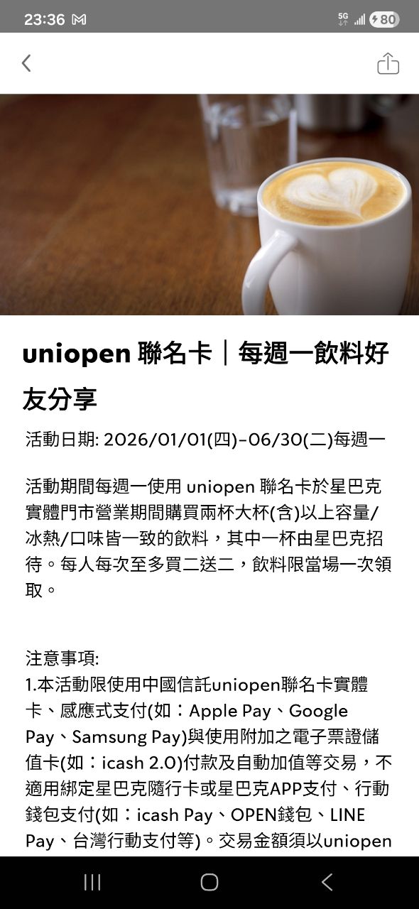 上半年每週一都有好友分享,繼續當星巴克神卡~