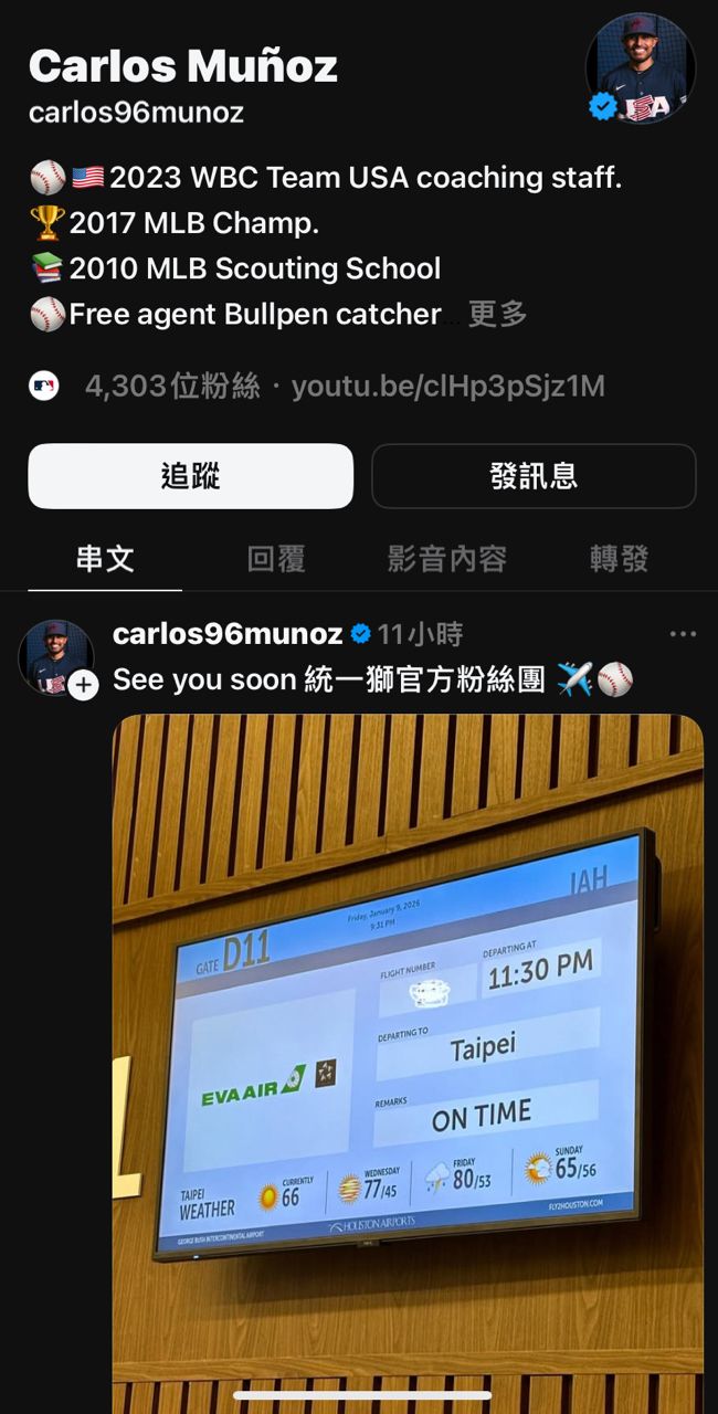 [閒聊] 統一捕手教練 即將起飛前往台灣