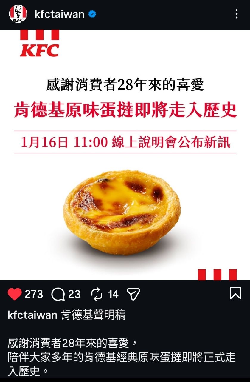 被蛋塔耽誤炸雞店不賣蛋塔