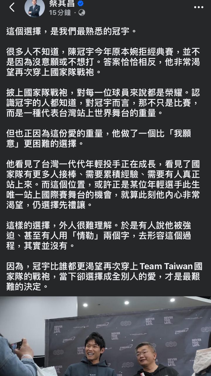 [閒聊] 冠宇沒意願或不想打WBC? 答案恰恰相反