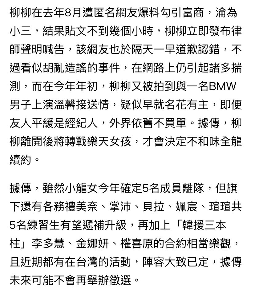 Re: [分享] 小龍女預計五人離開 官宣文
