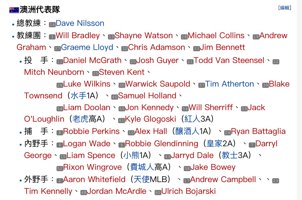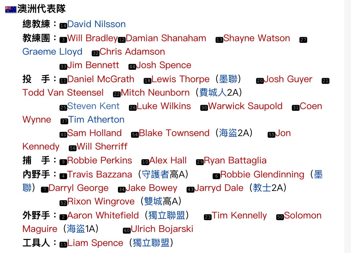然後這是上屆12強被中華隊痛宰的澳洲: