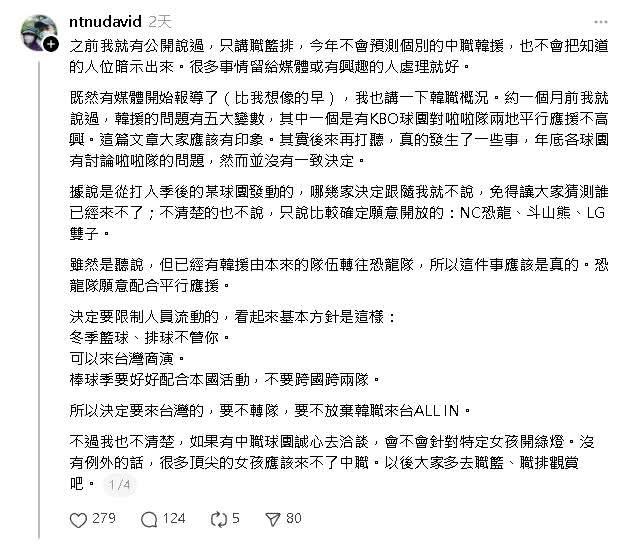 4個球團在去年年底召開會議,討論了與球團簽約的啦啦隊在賽季中禁止在韓國和臺灣兩個