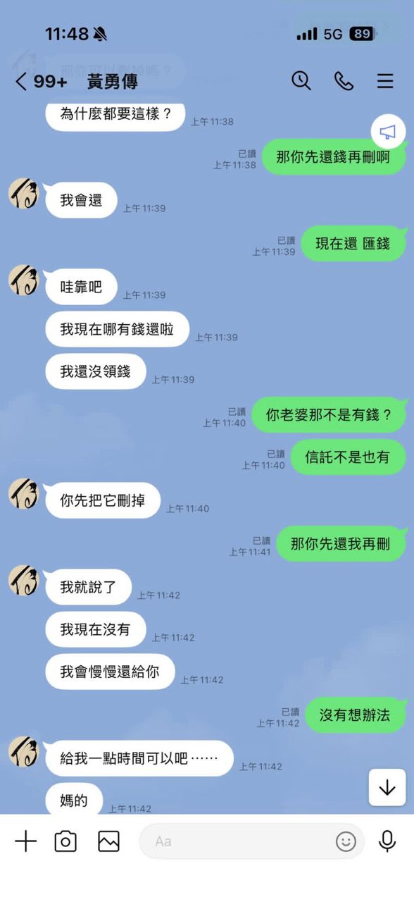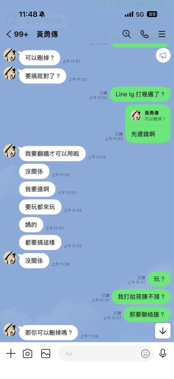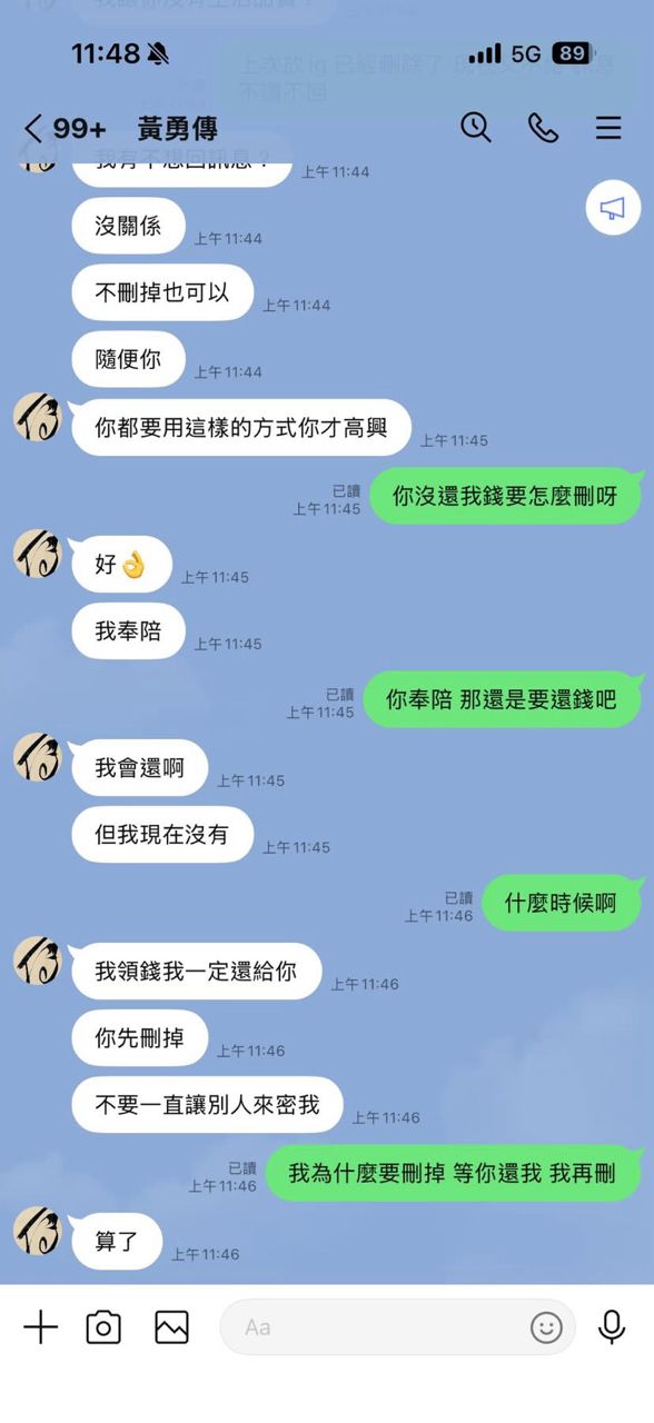 要求我刪掉 那先還錢 我再刪啊