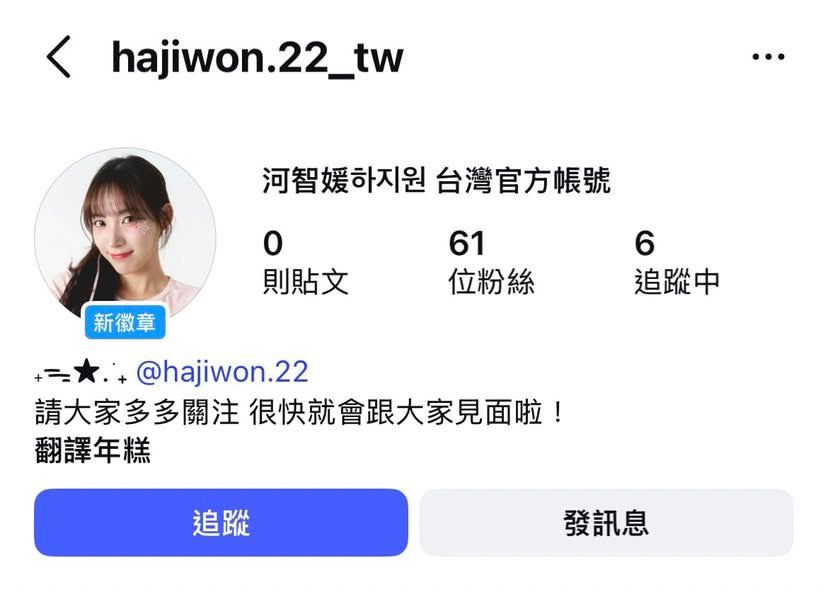 [閒聊] 河智媛.禹洙漢 辦台灣官方IG帳號