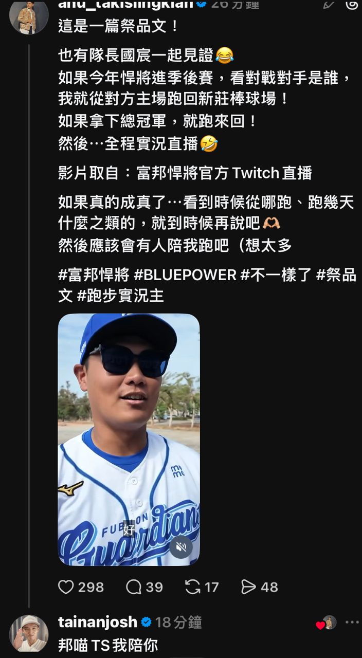 [閒聊] 阿努:悍將進季後賽 從對方主場跑回新莊