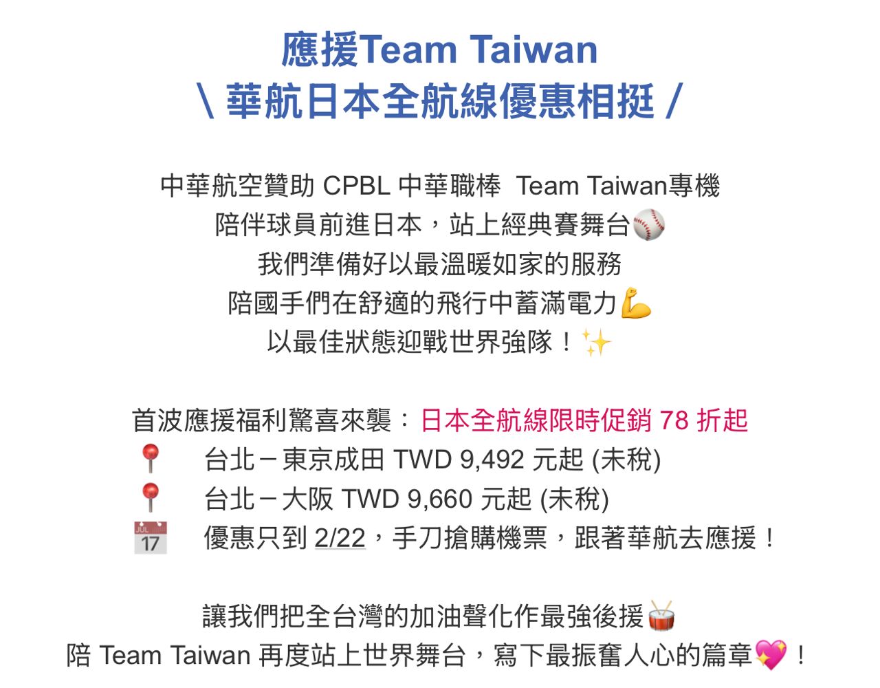 謝謝China Airlines 這麼支持WBC台灣隊!