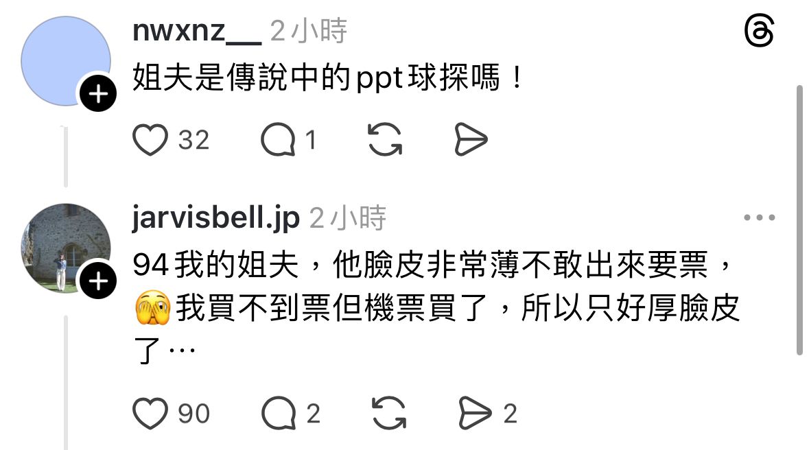 不知道台灣隊相關人員是不是可以給他們公關票啊