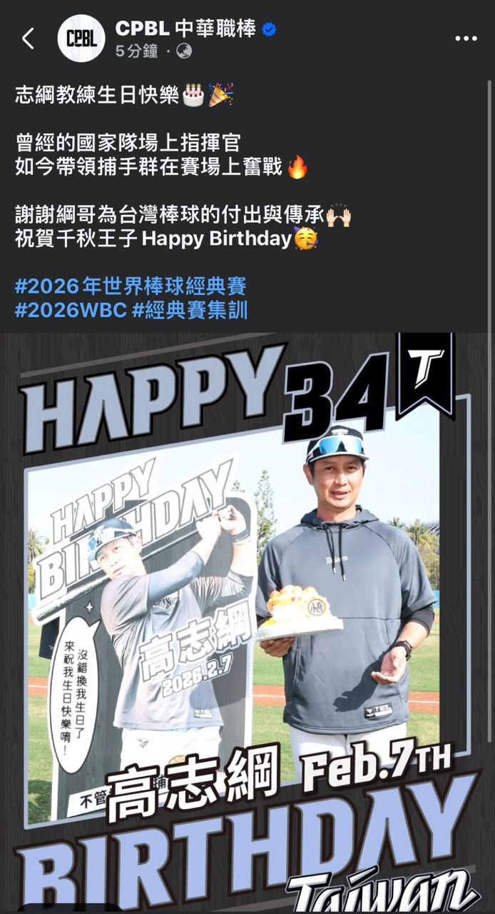 [閒聊] 中華職棒FB 高志綱生日快樂