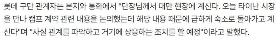 ,討論與春訓營地合約相關事宜,但因為該事件,正緊急返回下榻飯店。」並補充說:「