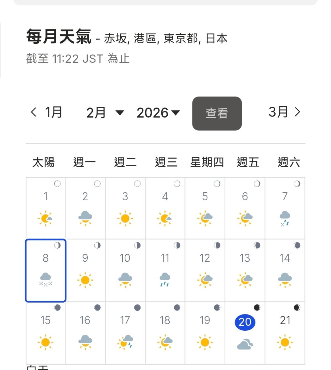 剛剛看下下禮拜東京的天氣預報,東京有寒流可能下雪,雖然是在東蛋內比賽,但這種天