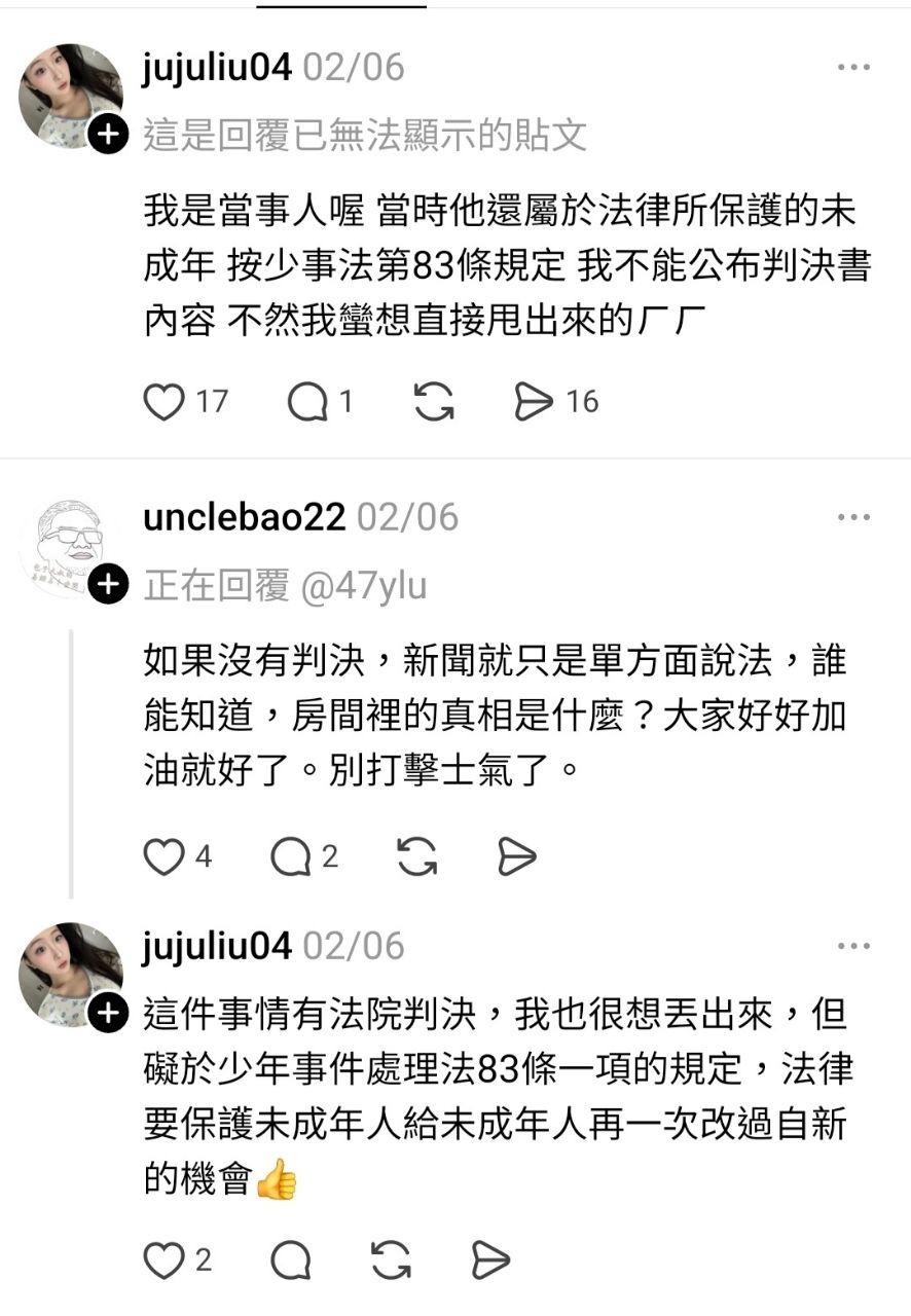 看到當事人前女友說有被判很想公開