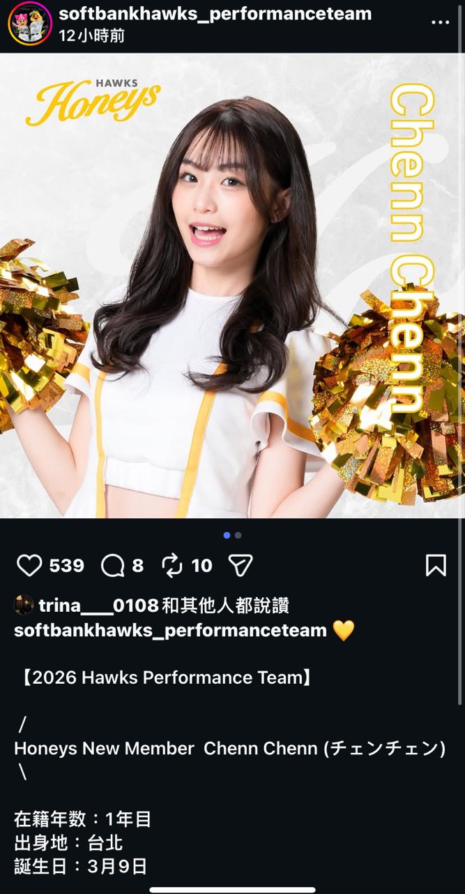 [閒聊] 軟銀啦啦隊補強台灣人-陳陳