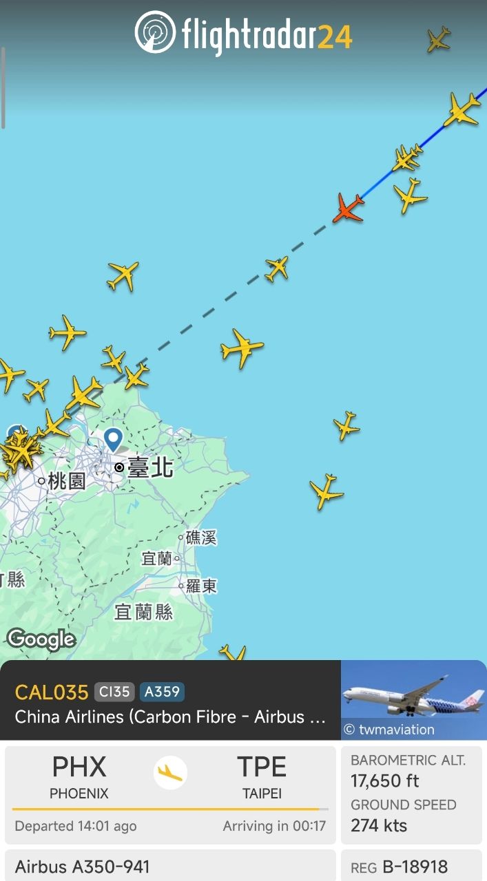 [分享] 費仔的班機即將降落桃園 !