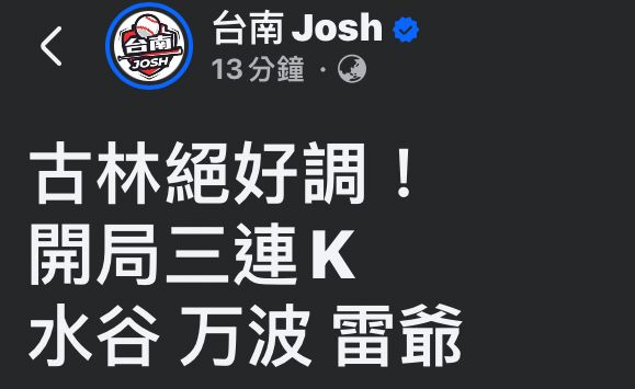 [閒聊] Josh:古林絕好調