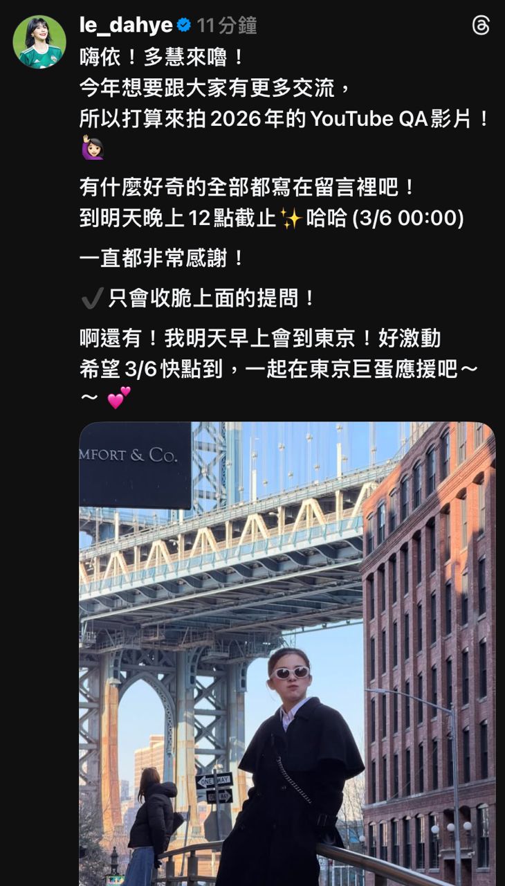 [閒聊] 李多慧3/6會到東京巨蛋應援