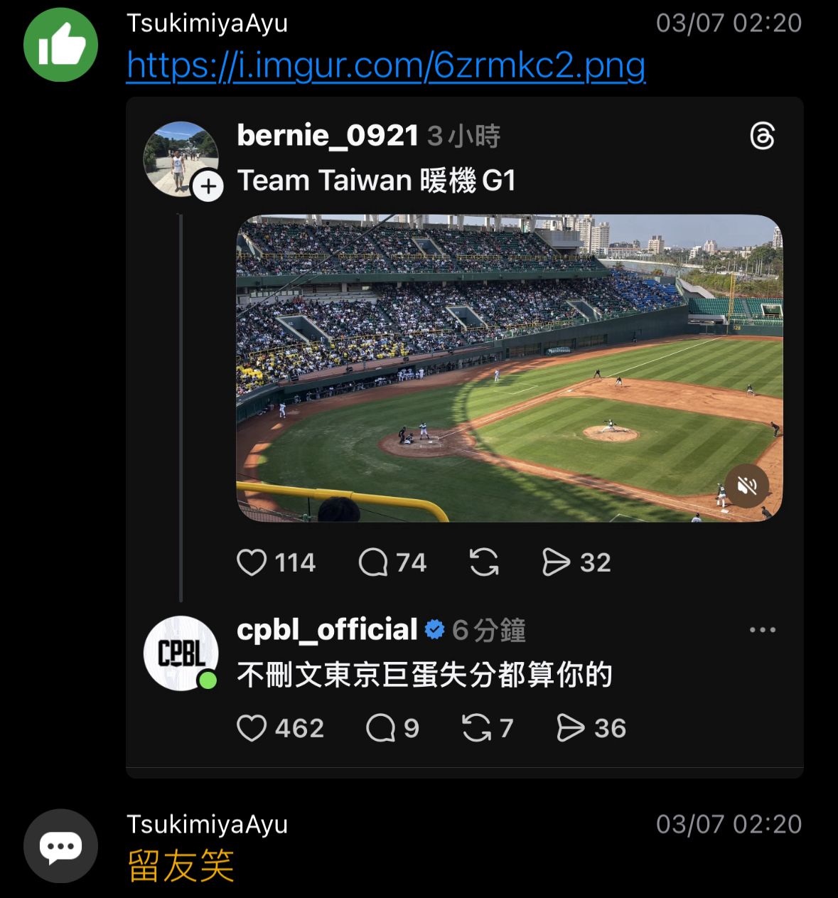 印象中還看到中職官方小編到處出征球迷的脆帳號