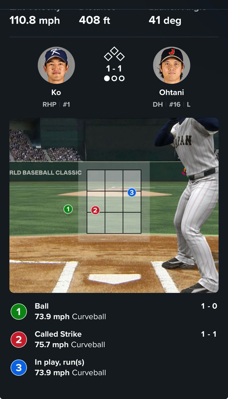 大聯盟官網顯示除了金慧成那棒是偏高直球