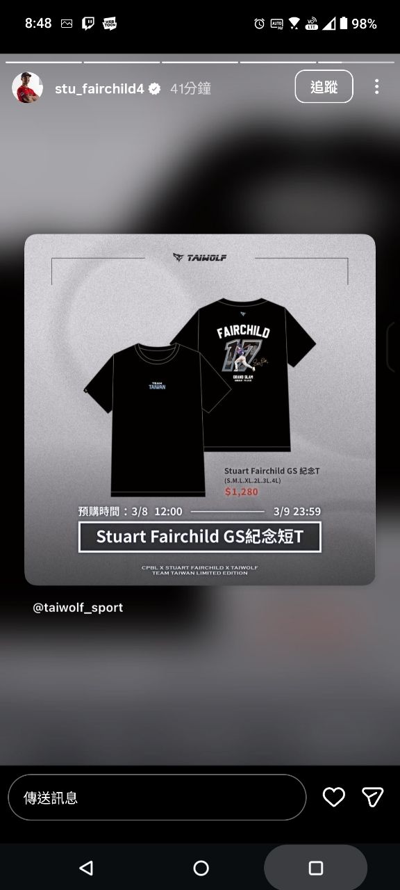 [閒聊] 台灣狼Fairchild首轟紀念短T不限量預購