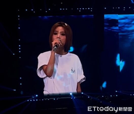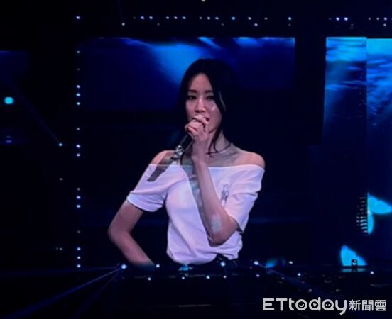 示「不要再抖了」,而剛剛站在舞台布幕後方時,她看見大巨蛋被4萬多名觀眾坐滿,哽