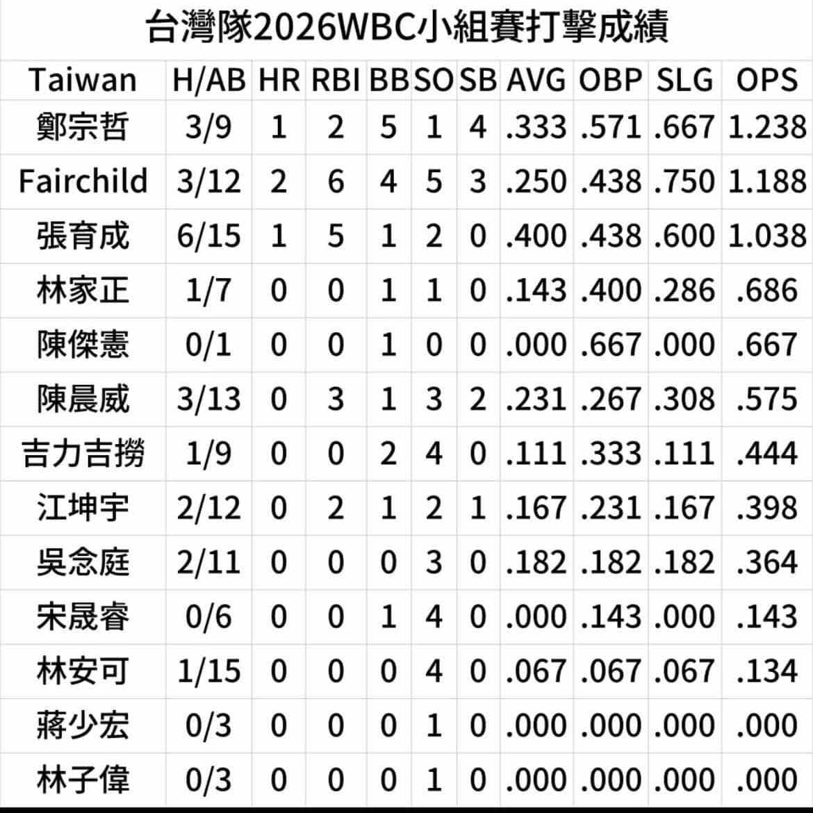 WBC預賽敲全壘打OPS也打到全隊最高都打到1.238了