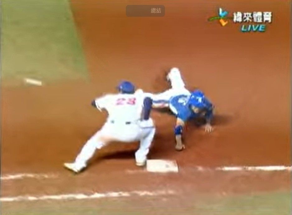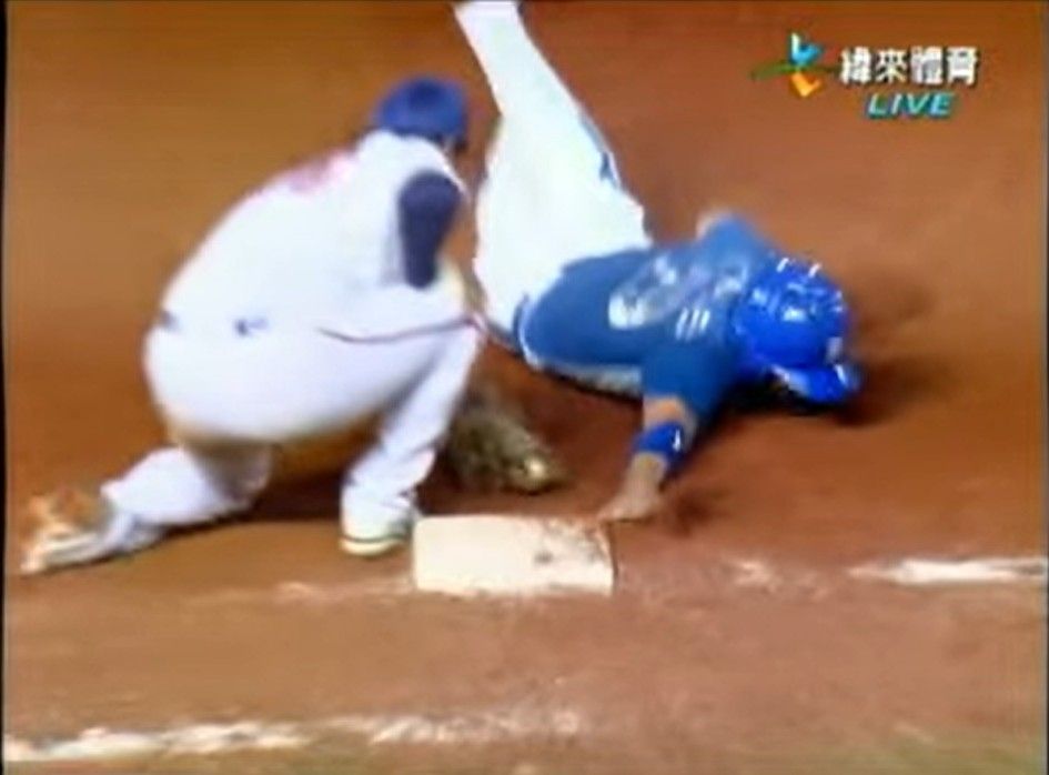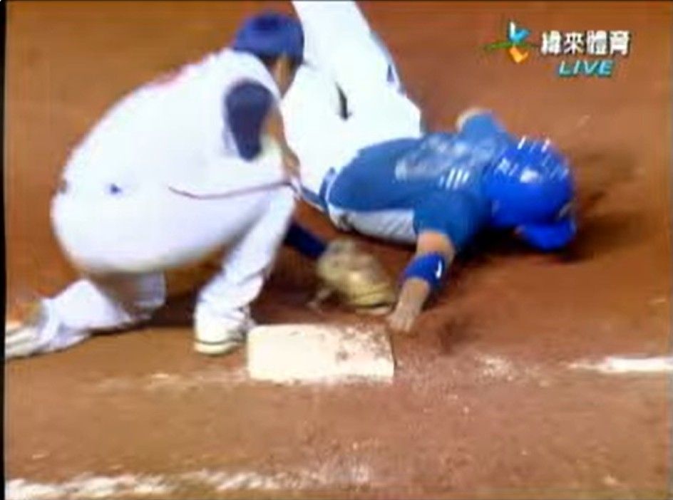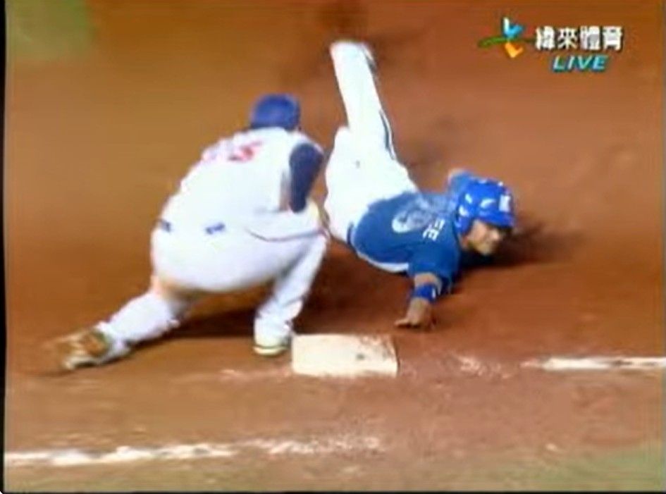 這張其實跑者手指應該已經碰到壘包了 但一壘手手套還沒